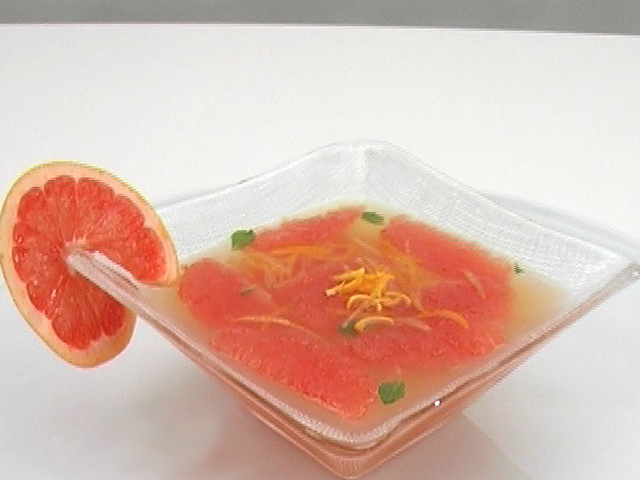 Летнее настроение в летнем супе.Состав:грейпфрут — 1 штука;сок одного апельсина;сахар — 80 гр;сок 1/2 лимона;вода — 1 стакан;цедра одного лимона;цедра одного апельсина. Язык: Русский